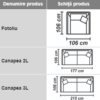 Canapeaua – structura este din lemn masiv de fag, plăci din așchii și fibre de lemn.