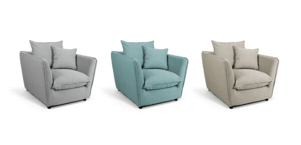 Șezutul și spătarul – pernele sunt confecționate dintr-un amestec de pene de gâscă și puf siliconat, așezate pe o împletitură de chingă oferind un plus de confort.