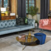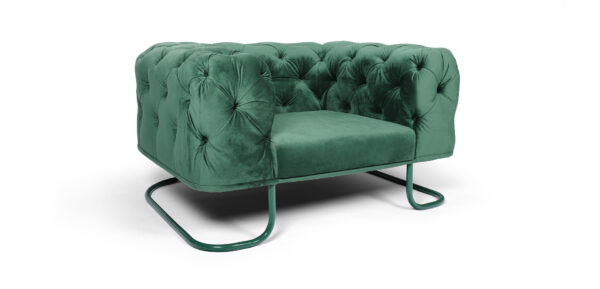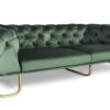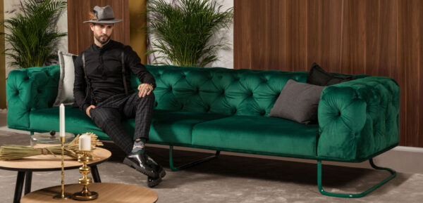 Interpretarea modernă a clasicului stil „Chester” se regăsește în „New Chester”, o formulă adaptată și gândită pentru a răspunde nevoii de confort contemporane. Contrastul dintre volumul consistent al brațelor și spătarului și linia suplă a șezutului, accentuată de picioarele metalice înalte, atrage în mod deosebit, conturând mai bine spațiul oferit de canapea.