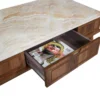 Oferă un aer modern datorită materialelor și finisajelor sale de calitate, dar și a designului delicat. Dimensiunea măsuței este de: 120 L x 68 l x 45 h cm. Măsuța aduce un aer elegant și sofisticat in orice locuință, fiind piesa de rezistență în orice decor.