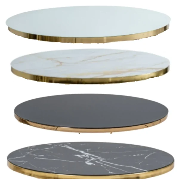 Oferă un aer modern datorită materialelor și finisajelor sale de calitate, dar și a designului delicat. Măsuța aduce un aer elegant și sofisticat in orice locuință, fiind piesa de rezistență în orice decor. Cadrul și picioarele mesei sunt foarte rezistente, prezentând un finisaj elegant din metal, ce poate fi personalizat în nuanțe de auriu, argintiu sau bronz.