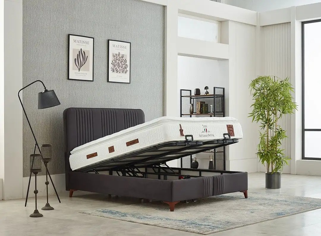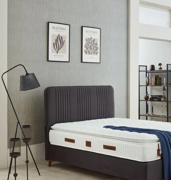 Patul imbina calitatea cu eleganta, iar acest model vine cu o tablie capitonata in stofa Premium. Este o piesa de baza in amenajarea dormitorului prin liniile fine si materialul placut la atingere.Tablia este fixata prin cusaturi, lucru ce ii sporeste rezistenta in timp. Astfel, poti sa stai rezemat sau intins, fara sa simti o presiune sau o stare de disconfort.