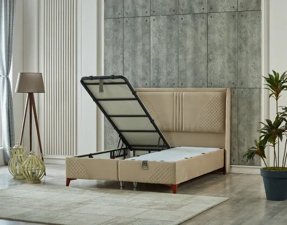 Pat tapițat dormitor 2 persoane cu ladă de depozitare Larisa – Un mobilier cozy la tine in dormitor